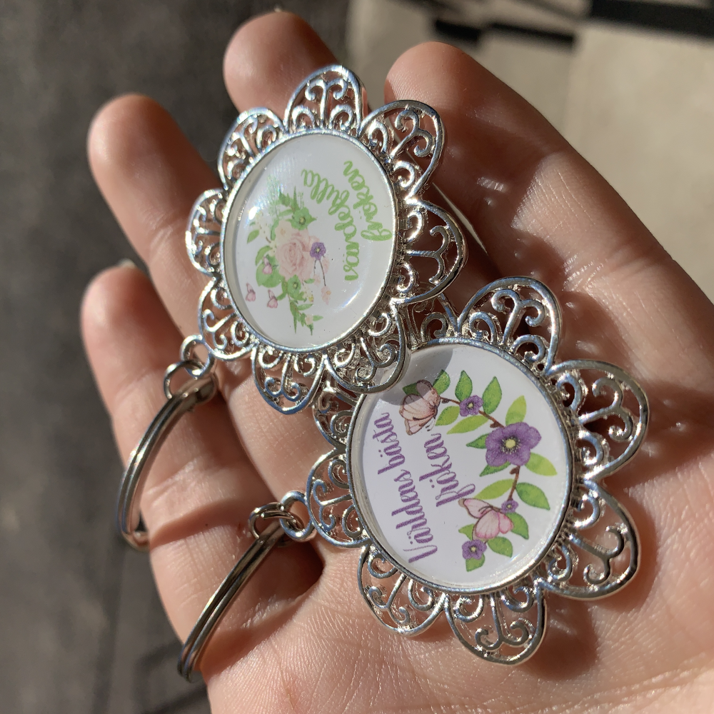 Nyckelring med texten: världens bästa fröken, den vänstra på bilden - bubblan mäter ca 25x25mm